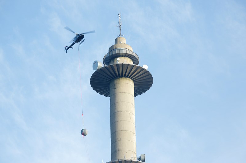 Thursday, December 10, lifting two antennas at the top of the Telecom Tower of Ougrée with the helicopter AS30B3e ... 12 minutes, a fast and efficient work!